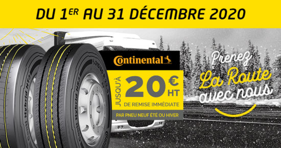 Du 1er au 31 décembre 2020, pour l’achat minimum de deux pneumatiques Poids Lourd Continental bénéficiez jusqu’à 20€HT* de remise […]